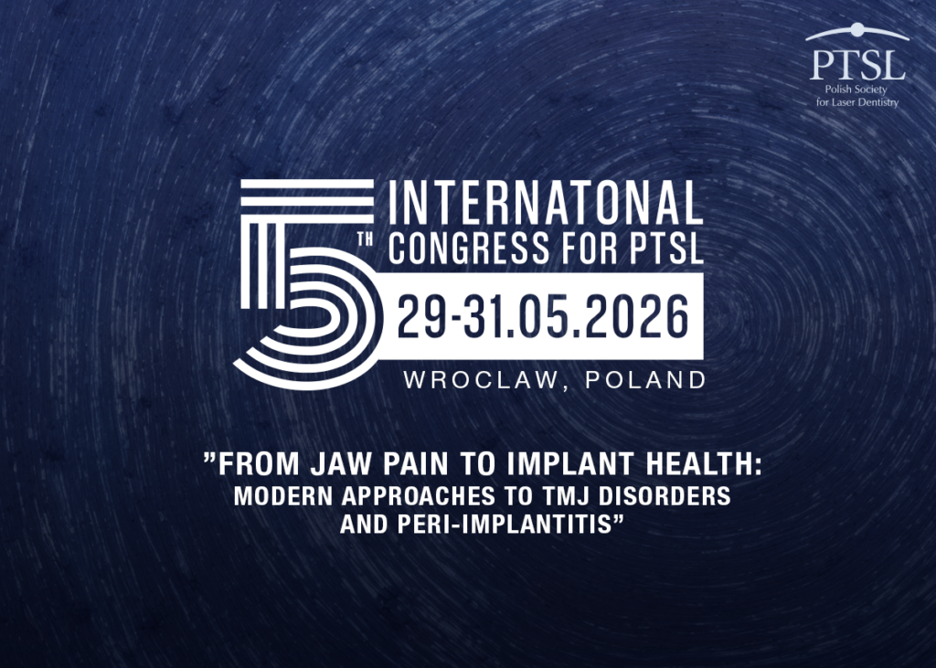 Mamy ogromną przyjemność zaprosić Państwa na 5. Międzynarodowy Kongres Polskiego Towarzystwa Stomatologii Laserowej (PTSL), który odbędzie się już 29-31 Maja 2026 r. we Wrocławiu. Tegoroczna edycja koncentruje się na temacie: Od bólu stawu skroniowo-żuchwowego do zdrowia implantów – nowoczesne podejścia w leczeniu zaburzeń TMJ i periimplantitis.
